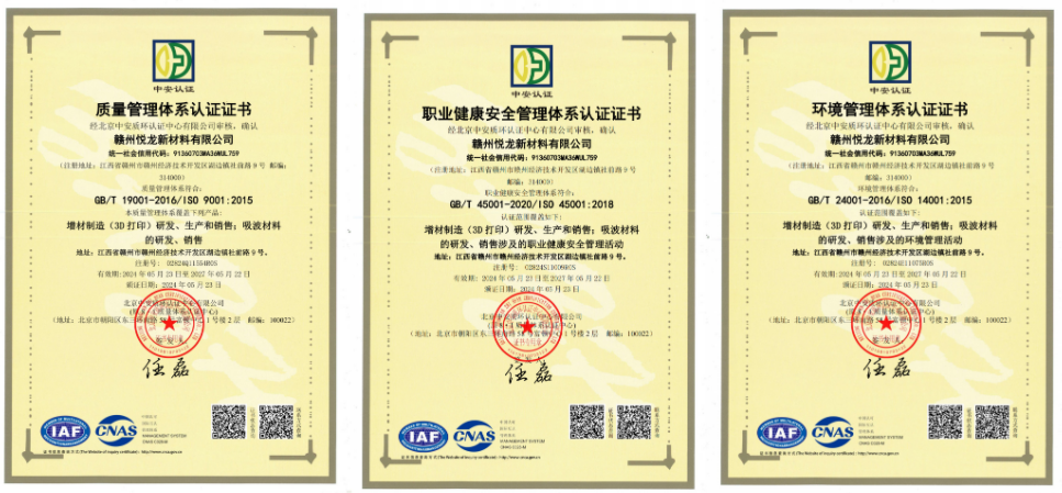 喜訊!悅安新材全資子公司-贛州悅龍新材料有限公司順利通過ISO“三標”管理體系認證